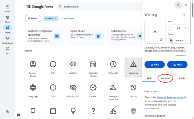 Compose Material3からマテリアルアイコンを表示する際は、アイコンライブラリからではなくhttps://fonts.google.com/iconsからアイコンをダウンロードして使用するように勧められています。