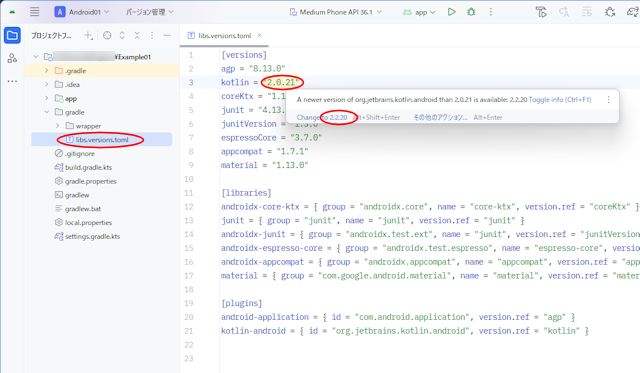 プラグイン/ライブラリの最新化はバージョンカタログを編集することで行います。