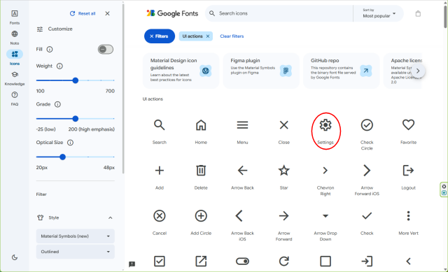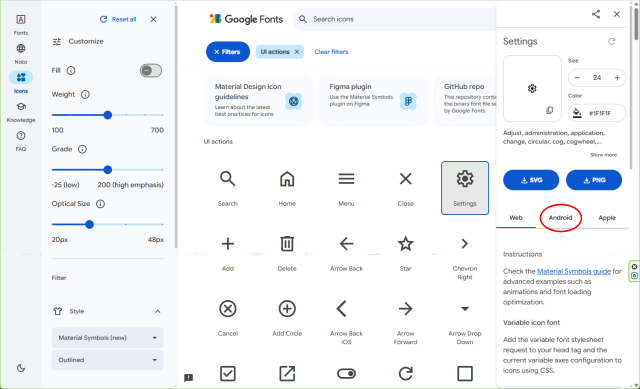 Compose Material3からマテリアルアイコンを表示する際は、アイコンライブラリからではなくGoogle FontsのIconsページからアイコンをダウンロードして使用するように勧められています。