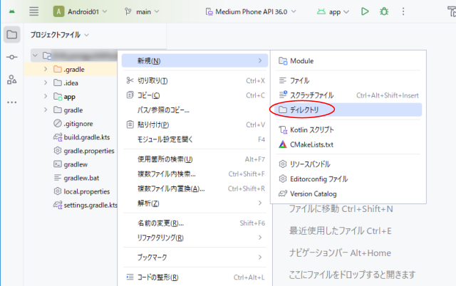 ディレクトリの作成プロジェクトのトップディレクトリで右クリック➡『新規(N)』➡『ディレクトリ』でbuild-logicディレクトリを作成します。