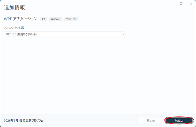 C# Windows デスクトップからWPFアプリケーションを選択します。